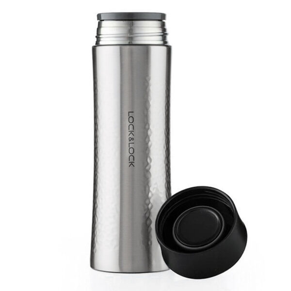 Altijd een lekker warm of koud drankje bij de hand met deze stijlvolle, gehamerde thermosfles. Het dubbelwandige roestvrijstaal zorgt ervoor dat je drankje minstens 6-10 uur warm of koud blijft. En dankzij het (uitneembare) filter kan je ook water met ijsblokjes, stukjes fruit of losse thee in de fles doen. De dop zorgt voor isolatie en voorkomt lekken, dus hij kan zonder problemen mee in je tas! En door de brede opening kan je ‘m na gebruik gemakkelijk schoonmaken.